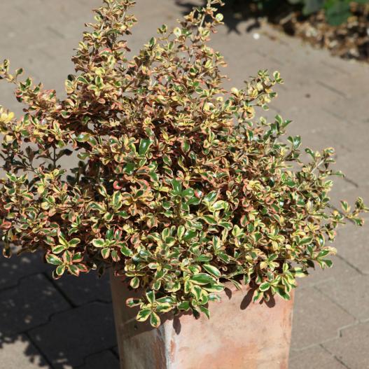 Subtil panaché jaune sur cette plante au feuillage luisant. Son feuillage évolue au fil des saisons entre jaune paille et jaune d'or. L'automne ajoute une teinte orangée sur le bout des feuilles. À associer en potées !