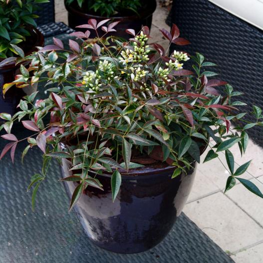 Flirt a des jeunes feuilles rouge vif qui deviennent plus intenses encore pendant l’été. Les vieilles feuilles sont pourpre-vert. Le nom japonais de cette variété, Murasaki, signifie pourpre. La variété reste compacte et fait des petites fleurs blanches en touffe qui peuvent développer des fruits rouges en automne. Flirt aime bien flirter en plein soleil.