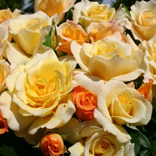 Lorsque la fleur éclot, elle est abricot, puis en s'ouvrant elle se pare de jaune paille et se laisse aller à mêler le blanc et le jaune dans ses pétales tout en laissant apparaître une pointe orangée en son cœur. La note fruitée de son parfum se dégage avec l'arrivée des rayons du soleil. Bien que discret, il est présent et permet à son adorateur de s'évader dans les odeurs de fruits du sud. La végétation de ce rosier est abondante et la résistance naturelle aux maladies permet une floraison remontante importante.