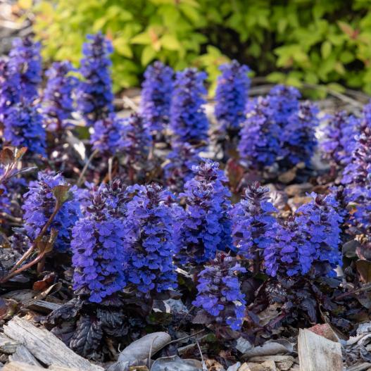 Un tapis homogène de feuillage persistant gaufré d'une manière originale dont le pourpre presque noir fait briller les fleurs d'azur. Cette variété résiste très bien à la pourriture. Elle permet de réaliser des compositions hivernales qui résistent aux aléas. L'apparition des fleurs fait éclater l'effet ornemental à la sortie de l'hiver.