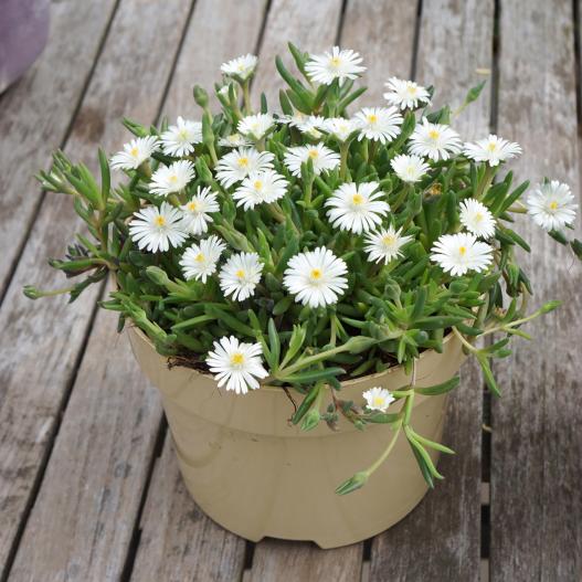 Vous marchez dans le désert, vous avez soif. Vous continuez, et ce que vous voyez ? Un paradis de couleurs... un rêve de fraîcheur ! Ces nouveaux Delosperma (fleurs de glace) sont maintenant disponibles. Jouez avec les belles couleurs. Ils n'ont pratiquement pas besoin d’eau, ils aiment la sécheresse et le plein soleil. Ces nouveaux Delosperma fleurissent de mai au début de l'hiver tant que le soleil brille. Ils peuvent aussi tolérer un hiver froid. Ils ne sont pas pour rien appelés “fleurs de glace”.