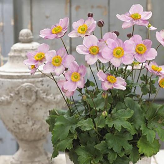 La floraison extrêmement riche de l'anémone Pink Cloud ressemble à une nuée de baisers roses. Les fleurs apparaissent par dizaines à la fin de l'été et sont présentes tout l'automne. Le feuillage particulièrement compact la rend idéale pour une utilisation en conteneurs ou pour la réalisation de bordures et de petits massifs. Pink Cloud se plaira dans un sol riche en humus et dans un emplacement partiellement ombragé.