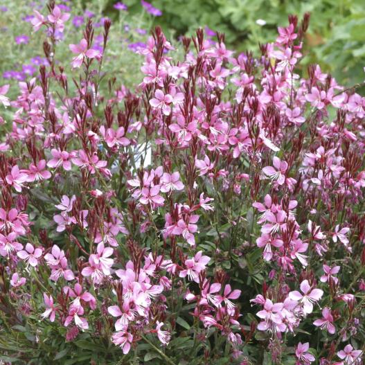 Compacte et très florifère, cette belle plante de culture facile ravit par la couleur intense de ses fleurs étoilées : C'est la plus belle sélection de Gaura.