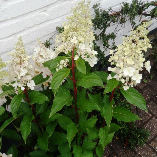Les grandes panicules crème de cet hortensia contrastent élégamment avec ses tiges rouge foncé, ce qui lui confère une allure unique ! La floraison dure plus de trois mois car les fleurs apparaissent blanches puis se parent de rose et enfin de rouge. Très rustique, la plante préfèrera les sols acides et frais. Le port de la plante est particulièrement érigé et ramifié.