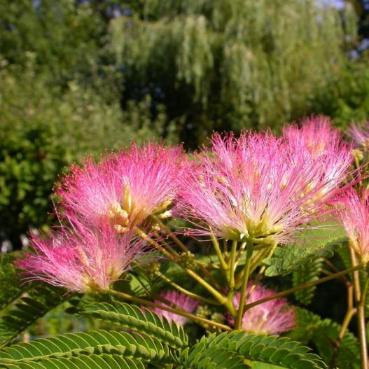La floraison est abondante et généreuse sur ce petit arbre résistant au froid. Sa floraison se déroule de juillet à septembre en ombelles surmontant le feuillage fin et découpé.