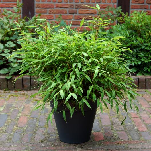 Ce bambou non-traçant est apprécié pour son port compact et son aspect nain. Il possède des feuilles vert clair, longues et fines. Il se plaira dans un sol humifère, frais, et dans un endroit ombragé. Très rustique, vous pourrez le planter en pot sur une terrasse ou en haie, sans risque qu'il n'envahisse les parterres du voisin. Il apportera une touche japonisante à votre jardin.