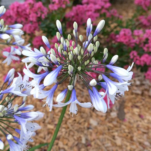 Twister est composée de fleurs bicolores blanches et bleu marine la base du plus bel effet. Cette agapanthe compacte et très florifère apporte au décor l'effet du blanc et du bleu tant convoité en une seule plante ! Les fleurs abondantes et compactes sont posées sur des tiges de taille moyenne.Twister permet de réaliser des bordures et des potées par sa végétation dense et rapide, elle offre rapidement une quantité de fleurs à regarder ou à cueillir.