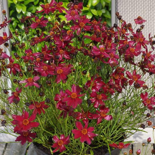 La floraison rouge est continue du printemps à l'automne. La plante est compacte en forme de boule. Elle se plaît en pot comme en massif. C'est une plante facile qui ne nécessite pas d'entretien particulier.