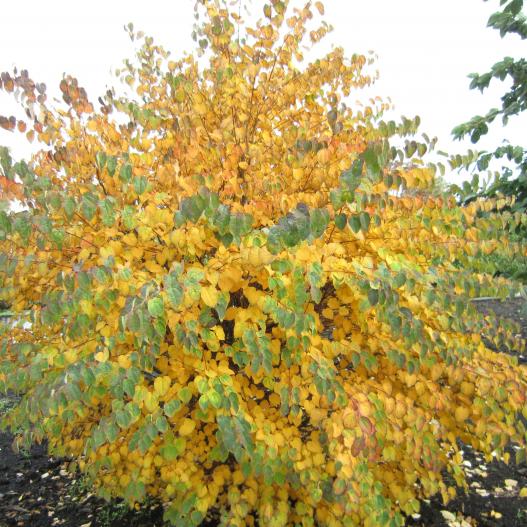 Glowball est de forme obovale avec une densité de branches importante et de jolies pousses très rouges. C'est un arbre de petit jardin facile et généreux.
