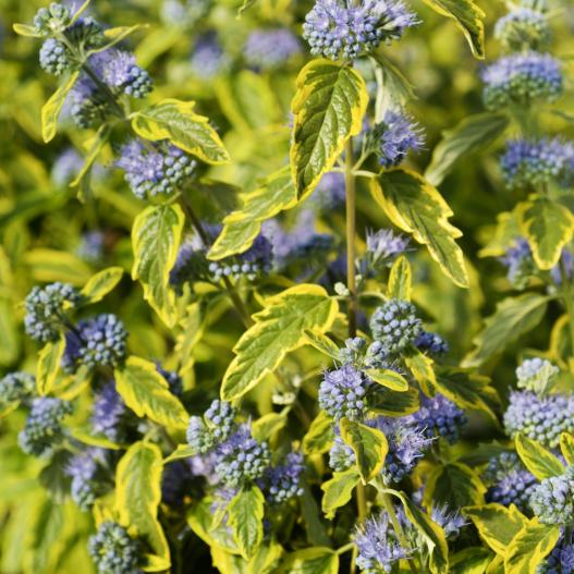 Le seul caryopteris au feuillage panaché de jaune. Une très belle floraison bleu azur en août/septembre. Summer Sorbet est une bonne plante de jardin et de balcon. Une taille courte printanière permet d'obtenir une belle forme. Il est possible de maintenir la forme en taillant jusqu'en juillet, la floraison sera plus tardive mais juste posée au dessus du feuillage très brillant.