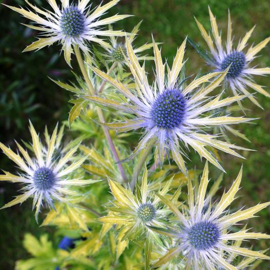 Ce petit chardon au feuillage jaune d'or aime la chaleur, supporte le froid, mais se plaît avec une ombre légère. D'abord verte, sa floraison estivale bleu cobalt est radieuse sur le feuillage à la couleur de l'or, avant de prendre une belle couleur paille en fin d'été.