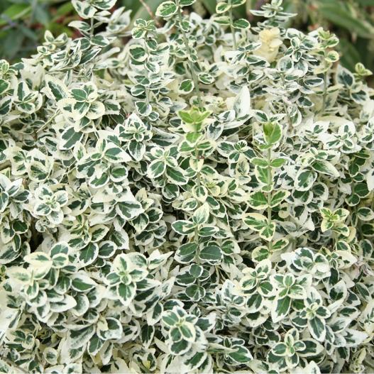 Par son feuillage crème, ce petit fusain montre beaucoup de grâce et permet la réalisation de massifs, rocailles, ou bacs. Cette couleur est la lumière de l'hiver ou le contraste de l'été avec les feuillages pourpres.