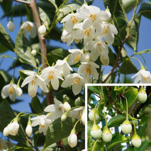 Le Styrax June Snow est un petit arbre très colonnaire rustique qui est fait pour les petits jardins. En fin de printemps, il se pare sur toutes les branches de fleurs blanches que son feuillage vert brillant met bien en valeur. Il n'est pas sensible aux maladies et peut se plaire en pot comme au jardin.