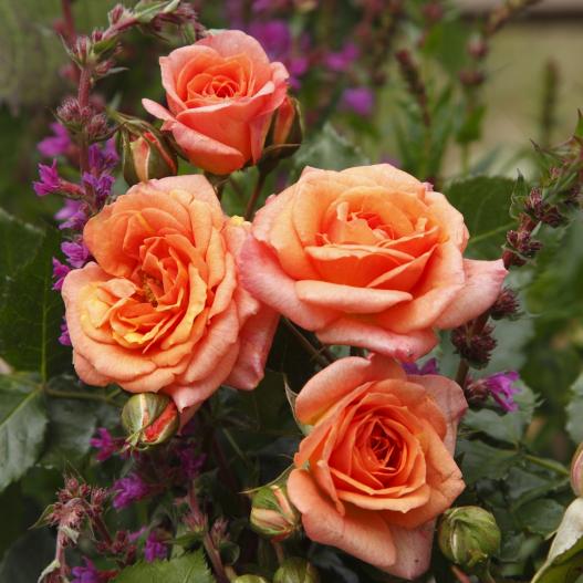 Belle floraison orangée tout l'été sur un rosier solide et très résistant aux maladies.