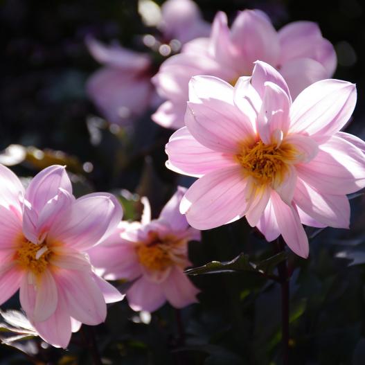 Le Dahlia DREAMY® Blush White offre un superbe contraste entre le rose tendre de ses fleurs et son feuillage pourpre. Une plante compacte et facile à cultiver, particulièrement adaptée à la culture en pot.