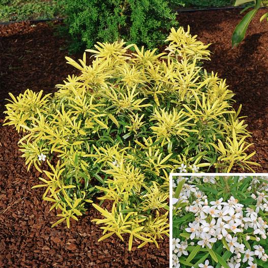 Cet oranger du Mexique, aux feuilles dorées très découpées, est un arbuste compact aux entre-noeuds serrés. Il présente des fleurs éparses blanches au printemps et quelques fois en fin d'été. Il se plaît en pot et en bac, mais également en pleine terre en solitaire comme en haie moyenne.