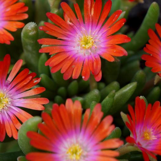 Vous marchez dans le désert, vous avez soif. Vous continuez, et ce que vous voyez ? Un paradis de couleurs... un rêve de fraîcheur ! Ces nouveaux Delosperma (fleurs de glace) sont maintenant disponibles. Jouez avec les belles couleurs. Ils n'ont pratiquement pas besoin d’eau, ils aiment la sécheresse et le plein soleil. Ces nouveaux Delosperma fleurissent de mai au début de l'hiver tant que le soleil brille. Ils peuvent aussi tolérer un hiver froid. Ils ne sont pas pour rien appelés “fleurs de glace”.