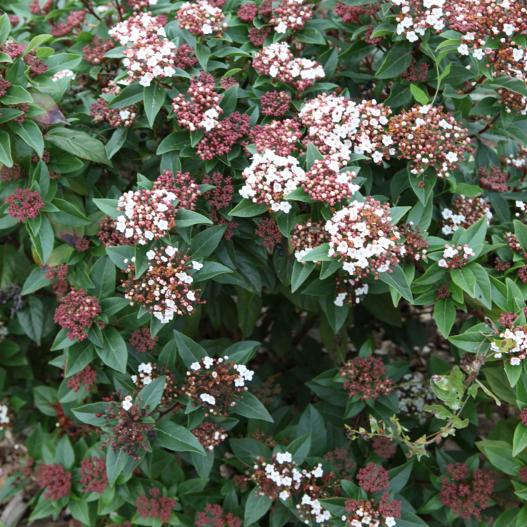 12 mois de décor changeant avec ses boutons pourpre-rosé, ses fleurs immaculées, ses fruits bleutés et ses feuilles persistantes. Il commence avec les boutons floraux qui apparaissent dès août et persistent jusqu'à la floraison de février à avril. C'est le seul laurier-tin qui fleurisse aussi longtemps. Parfait pour les haies uniformes ou mixtes. Idéal en massifs et à l'aise en pots et en bacs.