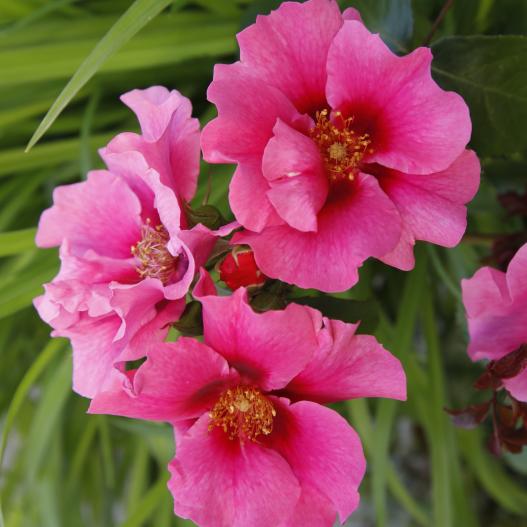 Des fleurs à foison sur ce rosier solide et facile. Avec ses fleurs roses au cœur presque rouge, il attire les abeilles et le regard. Il se plaît en massif au milieu des plantes vivaces comme sur la terrasse dans un joli pot.