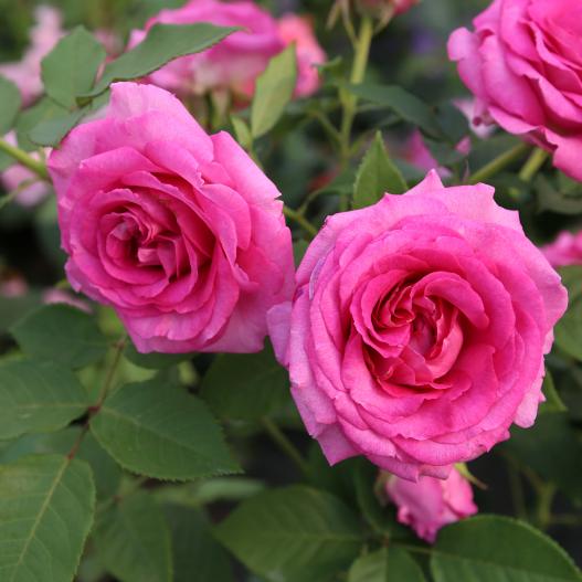 Les grosses fleurs doubles du rosier Mademoiselle Maria dégagent un parfum intense. Il a obtenu le label ADR en 2020, ce qui montre sa résistance aux maladies.