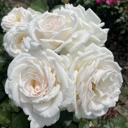 Ce rosier vigoureux au port buissonnant et large porte de belles roses blanc-crème bien formées et très parfumées. Il offre une très bonne résistance aux maladies.