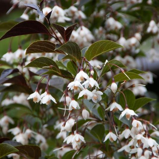 Les fleurs blanches en clochettes ressortent bien sur le feuillage foncé de cet arbuste. En automne le feuillage devient jaune, orange et pourpre. Il s'adapte aussi à la culture en pot .