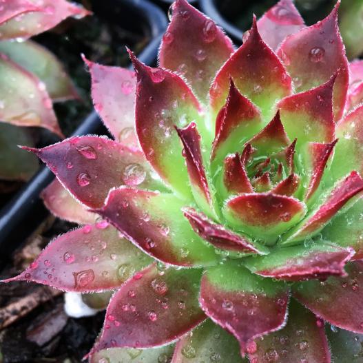 Cette joubarbe rouge se nuance de vert durant quelques mois avant de retourner au pourpre complet durant l'hiver. Une belle variété à associer aux autres joubarbes de la série CHICK CHARMS®.