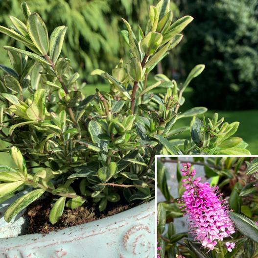 Une belle panachure blanc crème et vert tout au long de l'année. Quelques fleurs bleues en fin de printemps ajoutent à cette plante persitante une note de beauté complémentaire. En massif comme en pot, cette véronique arbustive est une valeur sûre au jardin.