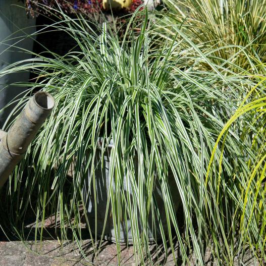 Son feuillage persistant est fin, bien marginé de blanc et de vert. Plus la plante vieillit, plus ses feuilles s'allongent et deviennent gracieuses et retombantes lorsqu'on place la plante auprès d'un surplomb. En été, ses fleurs brun-crème apparaissent pour laisser l'automne arriver. Everest peut être utilisé en couvre-sol mais également en rocaille ou en pot pour alléger des compositions trop lourdes.