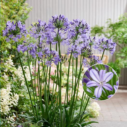 Belle originalité dans le monde des agapanthes, par sa floraison abondante et surtout remontante du printemps aux gelées. Les fleurs sont grandes et striées. Elle se plaît en massif comme en pot ou en bac.