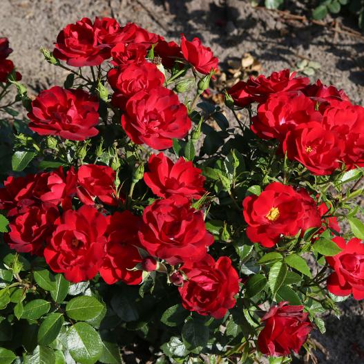 Le rosier Cayenne® est un rosier bas au port buissonnant. Remontant, il porte des fleurs légèrement doubles d'un beau rouge velouté. Il est bénéfique aux insectes et bien résistant aux maladies.