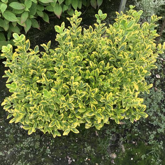 Le fusain du Japon Golden Quinten est une explosion de couleurs tout au long de l'année. Ses jeunes feuilles vert lime laissent entrevoir un centre vert plus foncé, qui s'agrandit à mesure qu'elles maturent. Les feuilles passent par une palette de nuances, allant du blanc avec un centre vert et des marges vert lime, jusqu'au vert franc avec des marges blanc-crème. Sa croissance verticale et touffue ajoute une dimension visuelle attrayante. Idéal pour les jardins, les pots sur terrasse ou balcon, ou même comme haie basse, le fusain du Japon Golden Quinten illumine chaque espace où il est planté. Rustique, il peut être cultivé en plein soleil ou à mi-ombre, dans un sol bien drainé.