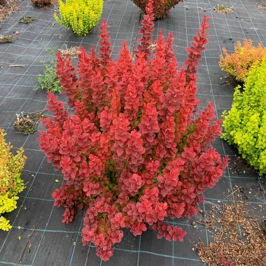 Néon est une variété lumineuse d'épine-vinette aux couleurs ardentes qui changent au fil des saisons. Les jeunes pousses du printemps démarrent orange lumineux puis tournent à un rouge incandescent bordé d'une fine marge jaune durant l'été. Une variété au port érigé qui se plaît en tous sols et se prête à de nombreuses utilisations. Néon n'est pas sensible aux maladies et parasites.