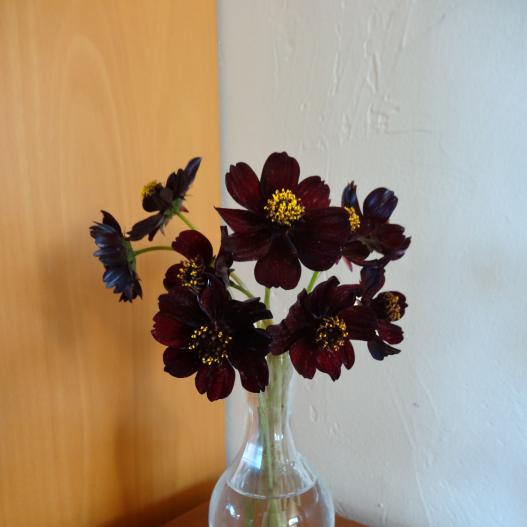 Le cosmos Eclipse enchante par ses grandes fleurs de 5 cm de diamètre d'un pourpre intense presque noir et son délicieux parfum de chocolat sucré. Vigoureux, il produit de longues tiges florales parfaites pour les bouquets. Plantez-le en plein soleil dans un sol bien drainé pour une floraison optimale. Arrosez régulièrement sans excès et pincez les tiges pour favoriser la ramification. Idéal pour apporter une touche gourmande et colorée à vos massifs et bordures.