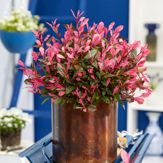 Découvrez le photinia Little Fenna, un amour d'arbuste qui se distingue par un port ultra-compact et des fines pousses d'un rose saisissant. Sa compacité lui confère une allure raffinée et son feuillage fin ajoute une texture subtile à votre jardin. Les nouvelles pousses émergent dans un rose vif et éclatant, créant un spectacle visuel captivant. Avec une ramification généreuse, cette plante forme un ensemble dense et harmonieux. Les tiges solides du photinia Little Fenna lui assurent une structure fiable et résistante. Succombez à la splendeur de ses pousses roses et apportez une touche élégante à tous les espaces extérieurs.
