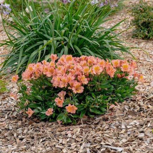Ce lys des Incas nain a tous les atouts de ses variétés cousines mais avec un port plus compact et des tiges qui se tiennent mieux. Il est également très résistant au gel ! Ses fleurs, abondantes de juin aux gelées, ressemblent à des papillons rose saumon marqué d'orange. Grâce à ces qualités, il est idéal pour les potées, mais on peut également l'utiliser en massif ou en bordure.