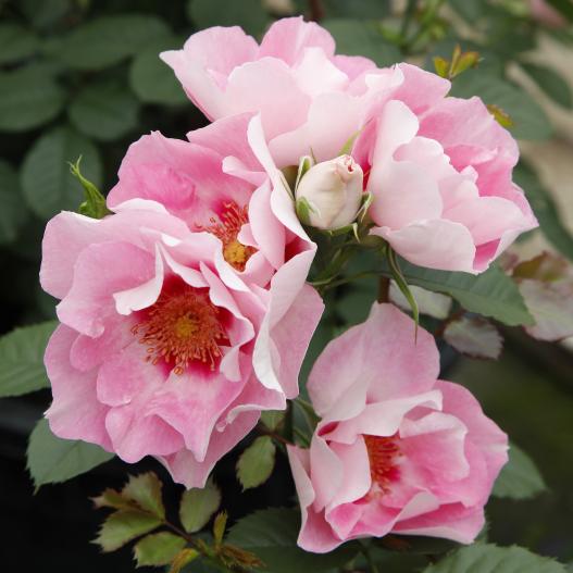 Des fleurs à foison sur ce rosier solide et facile. Avec ses fleurs roses au cœur pourpre, il attire les abeilles et le regard. Il se plaît en massif au milieu des plantes vivaces comme sur la terrasse dans un joli pot.
