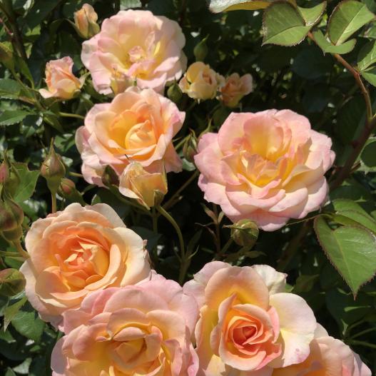 Dekora est une variété généreuse en végatation avec un feuillage sain et une haute résistance aux maladies. Ses fleurs nombreuses et remontantes présentent des coloris changeant du saumon à l'abricot. Cette variété peut constituer des haies fleuries.