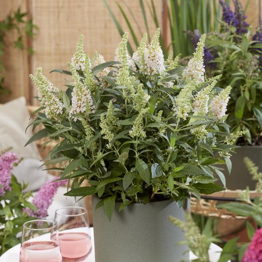 L'arbre aux papillons BUTTERFLY CANDY Little Cerise est un arbuste nain, dense et très florifère, produisant durant tout l'été des panicules de fleurs blanches ponctuées de jaune. Idéal pour les petits jardins et les bacs, il résiste parfaitement aux maladies et aux conditions difficiles. Plantez-le en plein soleil dans un sol bien drainé pour une floraison optimale. Taillez légèrement après la floraison pour encourager une nouvelle croissance et maintenir sa forme compacte.