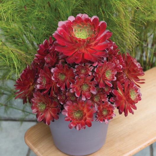 Cette nouvelle variété incroyable est issue du croisement entre un Aeonium et un Sempervivum. Il s'agit du premier croisement entre ces deux plantes ! Il en résulte cet hybride aux couleurs vives et chatoyantes, changeant au cours de l'année. Sa croissance ressemble à celle des Aeonium, avec un peu plus de vigueur et beaucoup de ramifications dès la deuxième année de culture. L'hiver, il est à protéger du gel et peut être rentré dans une pièce lumineuse. Le Semponium se plaît très bien en pot, la plantation en pleine terre est à réserver aux jardins côtiers ou dans le sud de la France, où les gels sont rares et faibles. La première variété d'une belle série de plantes !
