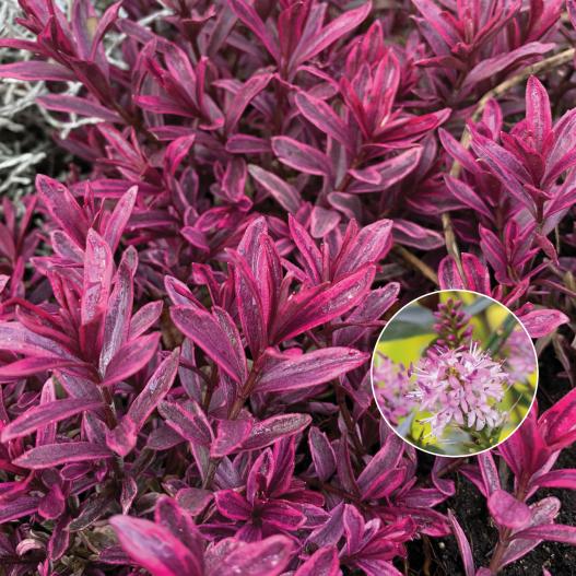 Compacte et élégante, la véronique arbustive MAGICOLORS® Black Magic offre un feuillage vert/crème en été et se pare de nuances rose/pourpre en hiver. Avec le froid, elle rosit abondamment, ajoutant une touche magique à votre jardin. Cette variété résistante est idéale en bordure ou massif. Plantez-la en sol bien drainé, à mi-ombre. Un enchantement visuel qui perdure toute l'année, avec peu d'entretien requis.