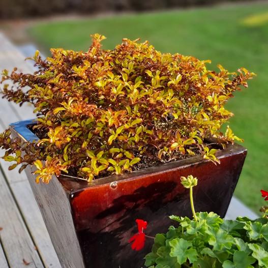 Le feuillage rond, brillant et très coloré dans les jaune-orangé est la qualité première de ce Coprosma. Cette belle plante est en plus ronde et compacte, ce qui demande peu d'entretien. Elle peut s'utiliser partout, en massif comme en bac ou en potée. En un mot : si la couleur vous séduit, elle est parfaite !