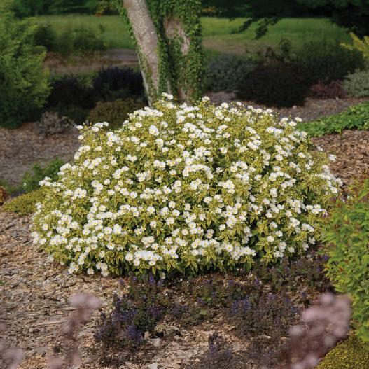 Ce petit arbuste de forme naturellement ronde se plaît en terrain sec et venté. Il est rare de pouvoir allier des plantes au feuillage doré et des terrains secs. C'est le plus souvent réservé aux plantes grises. Son feuillage persistant panaché se teinte légèrement de rose en hiver et la plante se pare d'une belle floraison blanche dès les premiers jours de l'été. Plantez-le en plein soleil pour qu'il vous illumine de son beau feuillage toute l'année. Il convient pour les petits massifs et les pots.