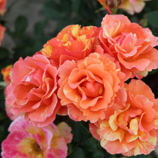 Lollipop montre sur ses fleurs une marbrure assez unique orange et jaune. La plante, résistante à l'oïdium et à la tache noire, a un port buissonnant/érigé. Une superbe introduction